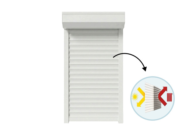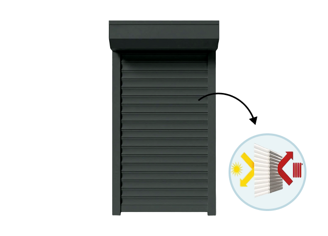 In de winter zorgt het AR-41T Low Emission rolluik ervoor dat uw ruimte zijn warmte behoudt. In de zomer zorgt het ervoor dat de ramen niet opgewarmd kunnen worden door de zon. Hierdoor blijft de temperatuur in huis tijdens ieder seizoen behaaglijk. Dit type rolluik is leverbaar als inbouwrolluik en opbouwrolluik.