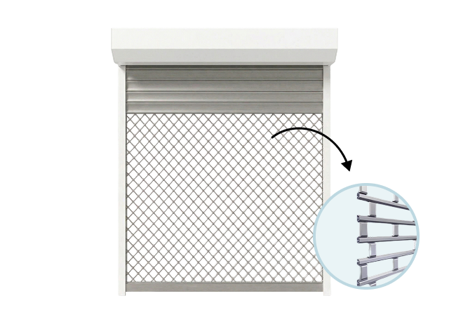 De horizontale profielen zijn aan elkaar gekoppeld met scharnierende schakels. De onderlinge afstand tussen de schakels is variabel en kan voor extra stabiliteit zorgen door meer schakels toe te passen en/of te schakels op kortere afstand van elkaar te monteren. De behoefte aan extra schakels kan ontstaan door behoefte extra stabiliteit, bijvoorbeeld ingeval van inbraak en vandalisme gevoeligheid, intensief gebruik, bijvoorbeeld bij parkeergarages. Aan de onderzijde van het rollende pantser is standaard een blinde schop en spatzone aangebracht met blinde verzinkt stalen rolluikprofielen.